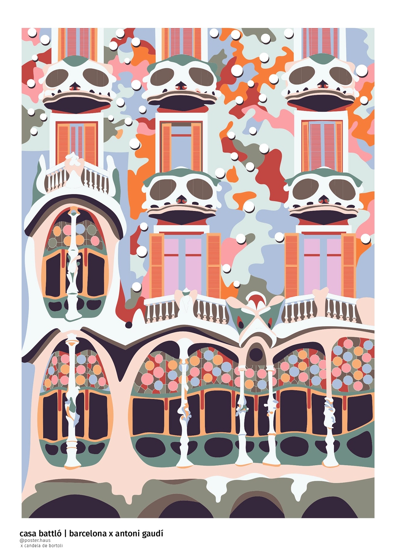 Grafisk plakat af Casa Battlo i Barcelona. Casa Battlo er et arkitektonisk kunstværk skabt af den berømte kunstner Antoni Gaudí.