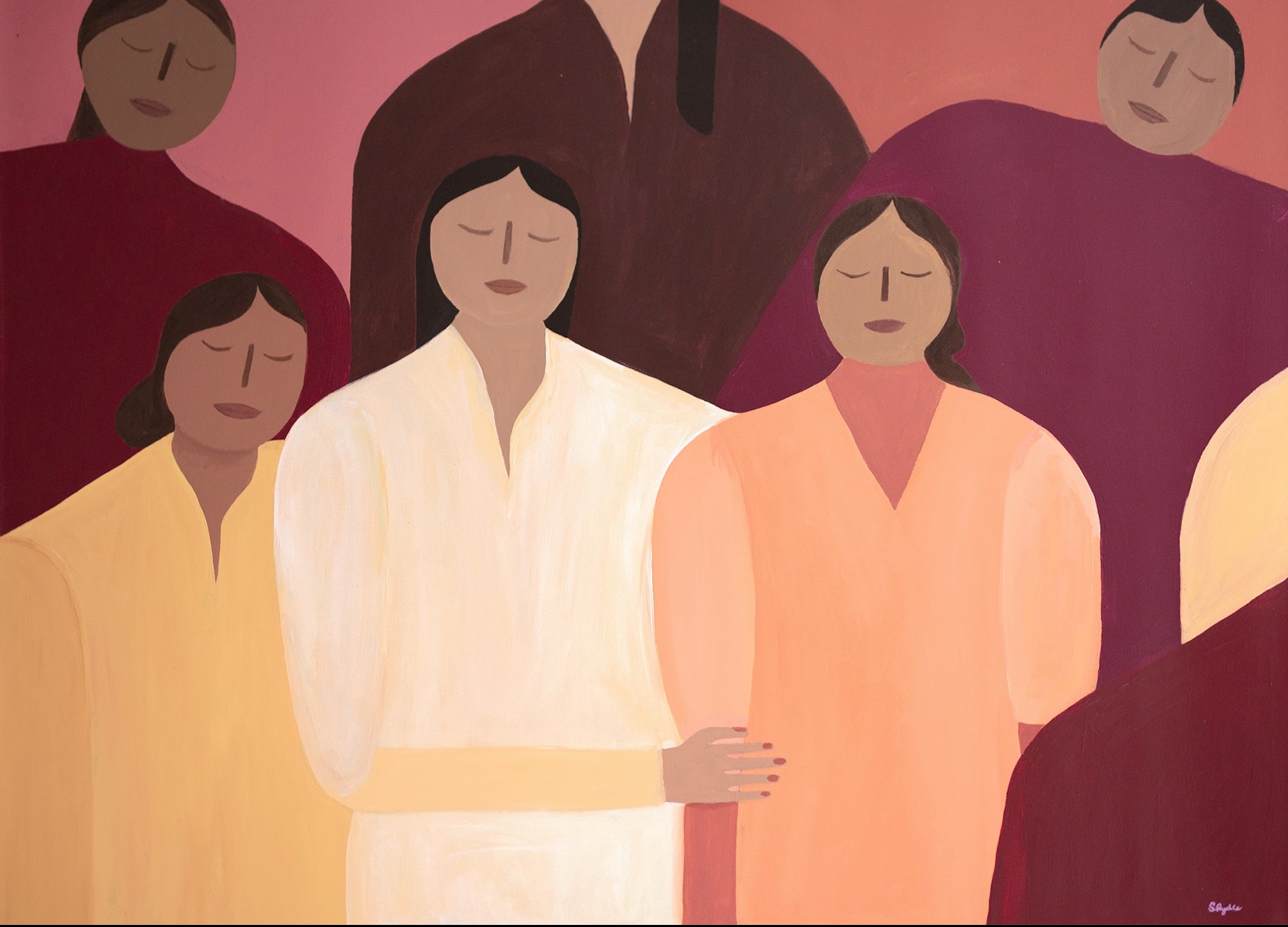 Stephanie Rydle plakat med titlen Converstations with Friends. Plakaten udstråler søsterkærlighed og fællesskab.